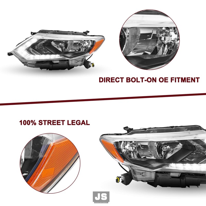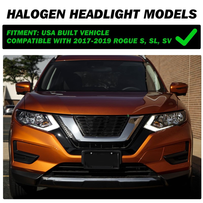 JSBOYAT Headlight Assembly Compatible with 2017-2019 Nissan Rogue S/SL/SV OE Style Projector Headlamp LH Driver Side