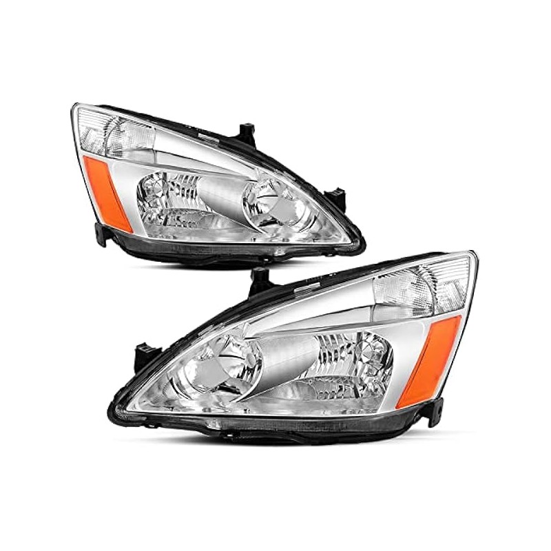 JSBOYAT Headlight Assembly Replacement for 2003-2007 Honda Accord Halogen Headlamp Chrome Housing with Amber Reflector (Driver & Passenger Side)