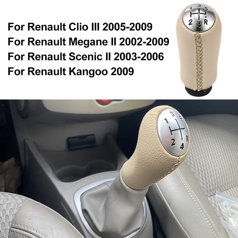 • Car Model: This Car Gear Knob is Perfect fit and Compatible with Re--nault Clio III 2005-2009,Megane II 2002-2009,Renault Scenic II 2003-2006,Re--nault Kangoo 2009(Note: The compatibility is just for reference. Please check if your gear knob is the same as ours before purchase!)