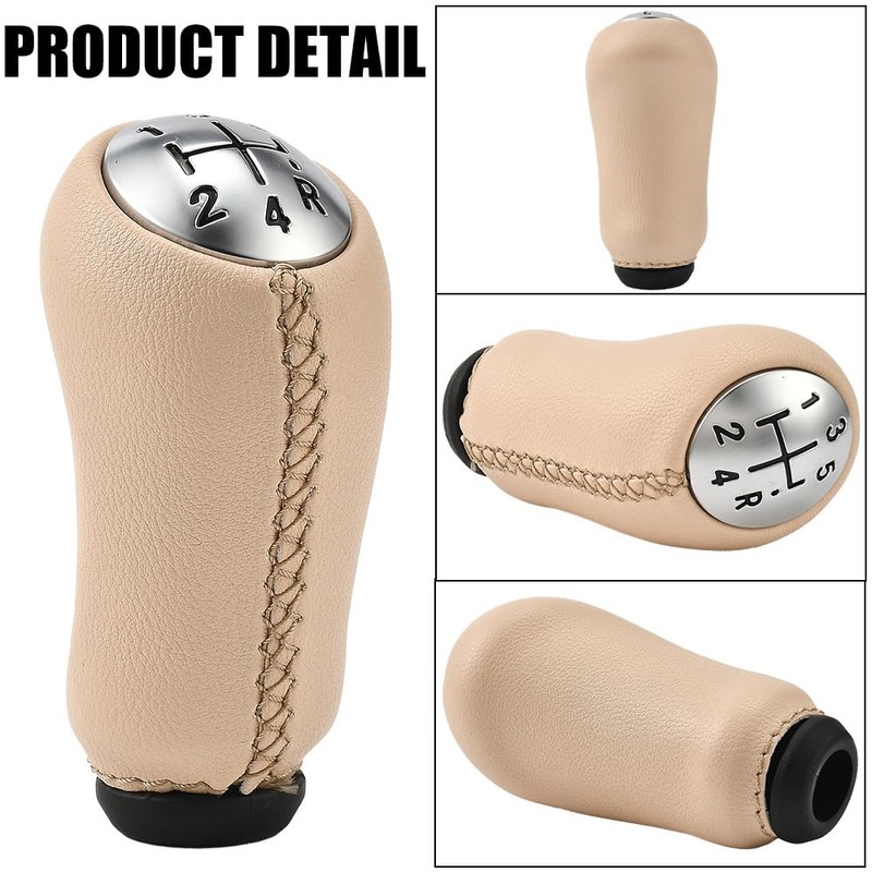 JSCARLIFE Car Gear Knob, 5-Speed Car Shift Knob Fit for R-enault Clio Megane 2 Scenic Kangoo Car Gear Shift Knob Upgraded ABS and Leather Gear Stick Knobs (Beige)