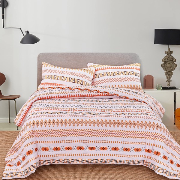 JSD 3 Piece Boho Comforter Set King Size, All Season Lightweight Geometric Microfiber Comforter with Pillow Shams
