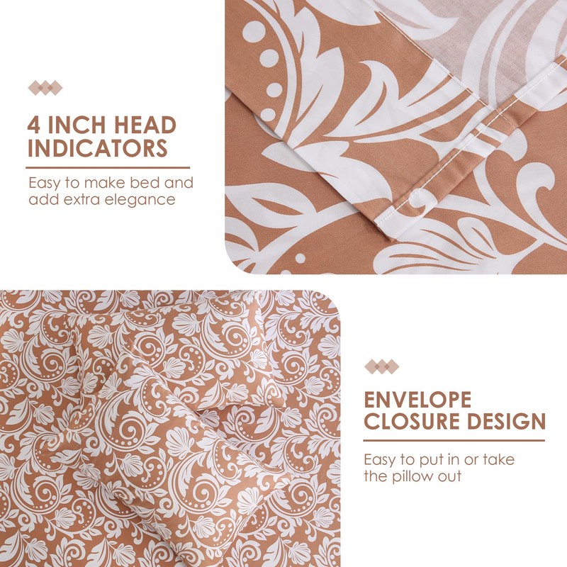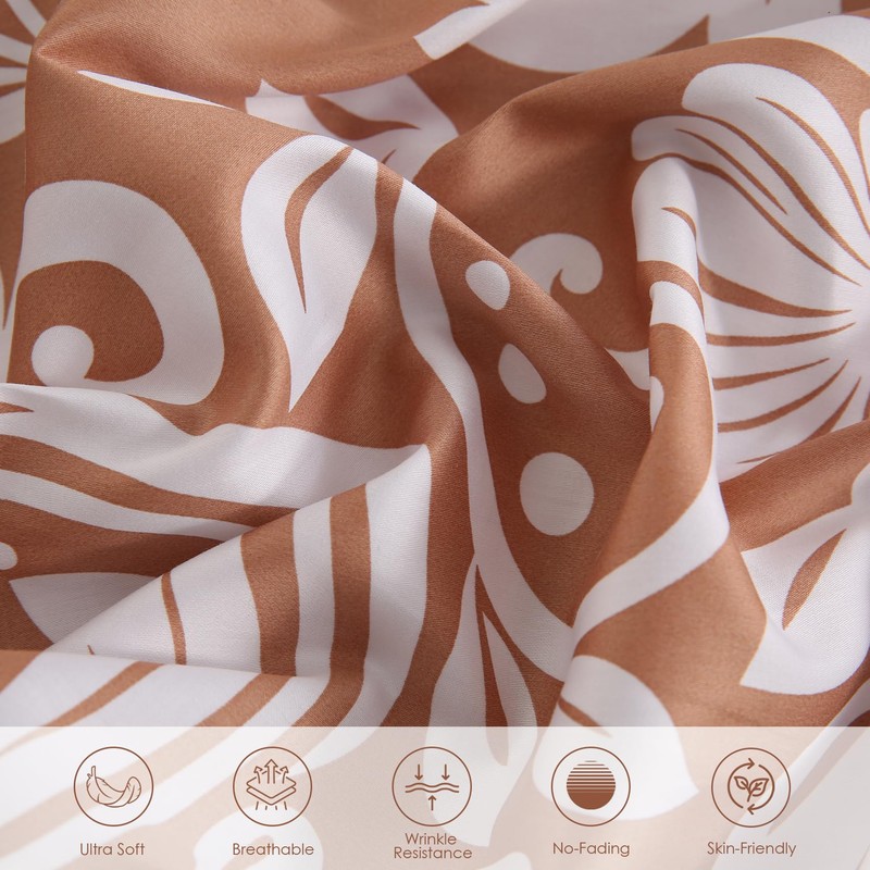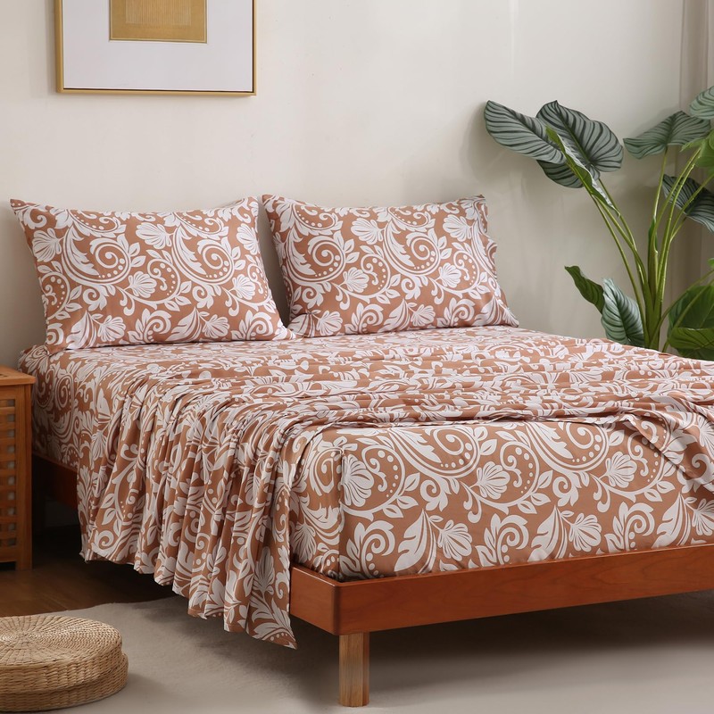 JSD Brown Damask Cotton Sheet Set Twin Size, 300 TC Printed Sateen Sheets Deep Pocket, Soft Breathable Wrinkle Free