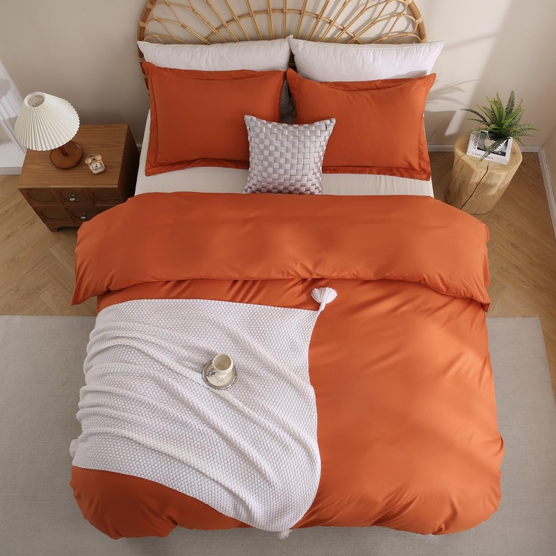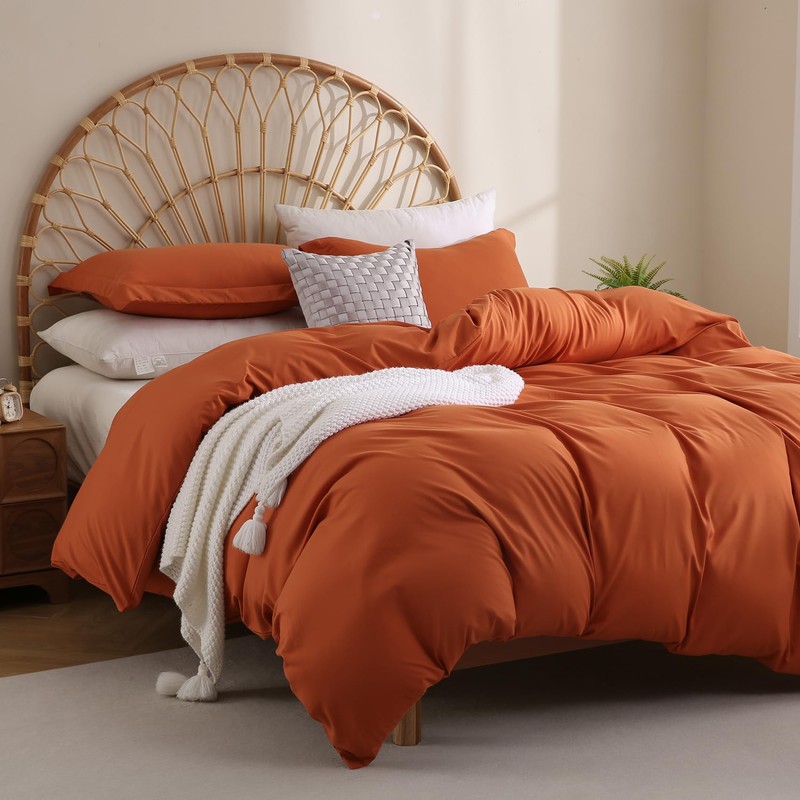 JSD Burnt Orange Duvet Cover Set Twin Size, 2 Piece Microfiber Kids Duvet Cover with Pillow Sham, Zipper Closure, Comforter Not Included