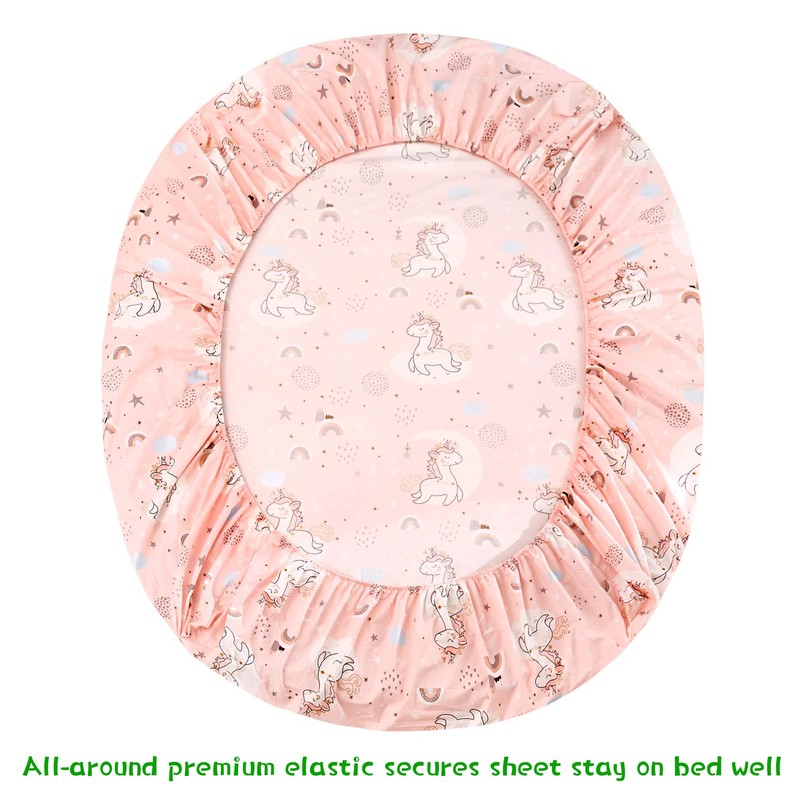 JSD Pink Moon Unicorn Kids Sheet Set Twin 3 Piece, Cute Printed Microfiber Bed Sheets for Girls Deep Pocket