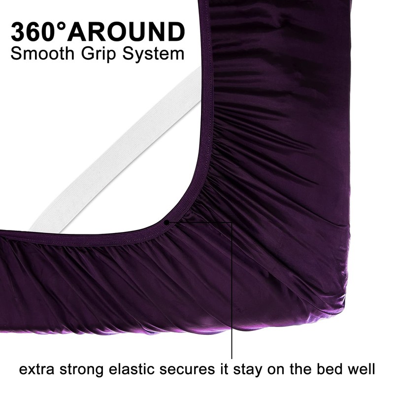 JSD Purple Satin Sheet Set King Size, 4 Piece Silky Bed Sheets Extra Deep Pocket, Good for Hair and Skin