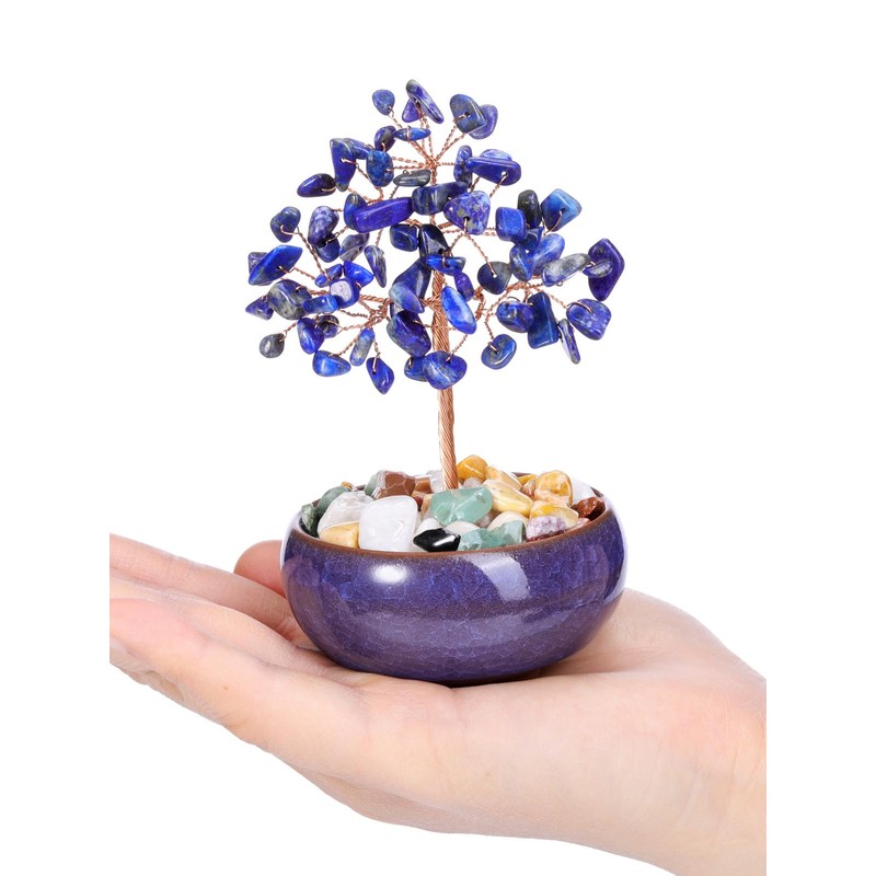JSDDE Chakra Feng Shui Baum, Heilsteine Edelsteine Baum, Geldbaum, Lebensbaum Deko, Kristallbaum, Glücksbringer Spirituelle Feng Shui Deko (Lapislazuli)