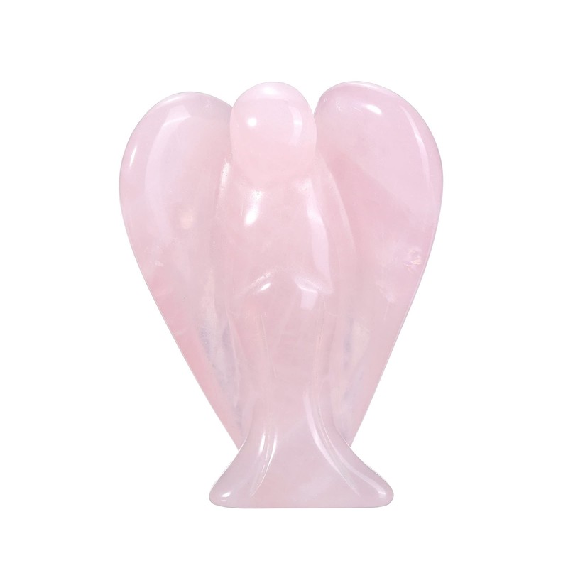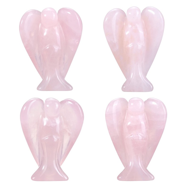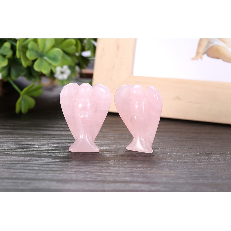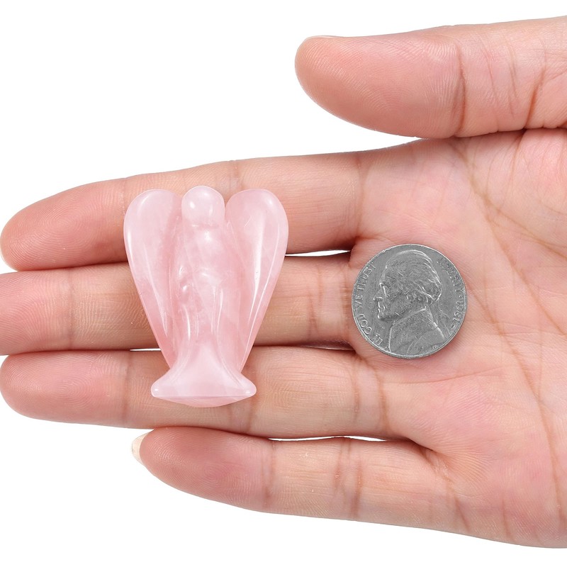 JSDDE Rose Quartz Crystal Angel Figurine Healing Gemstone Carved Mini Pocket Guardian Angels Statue Ornament Decoration 1.5 inch