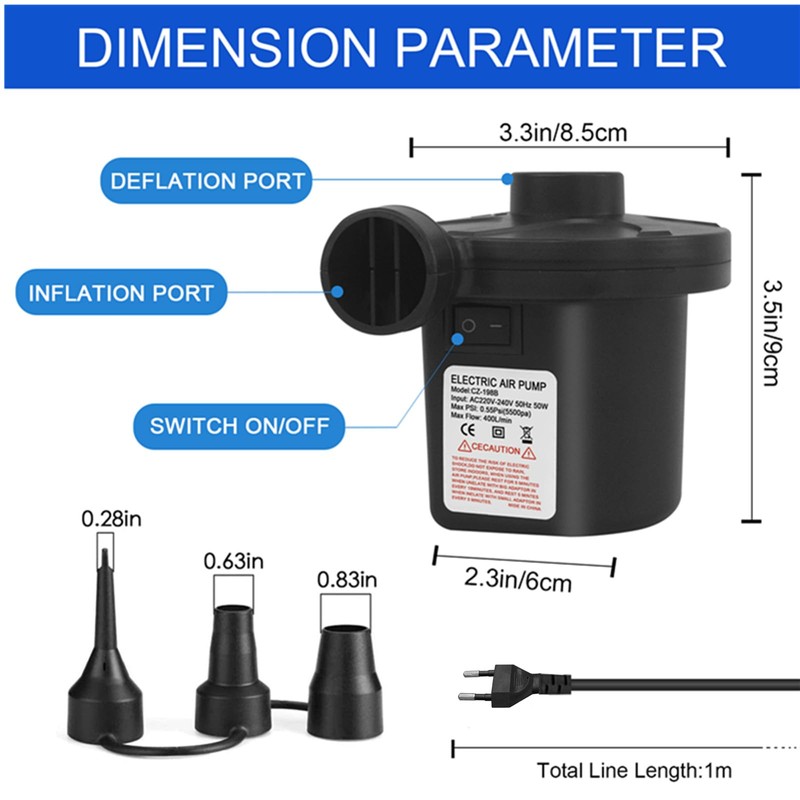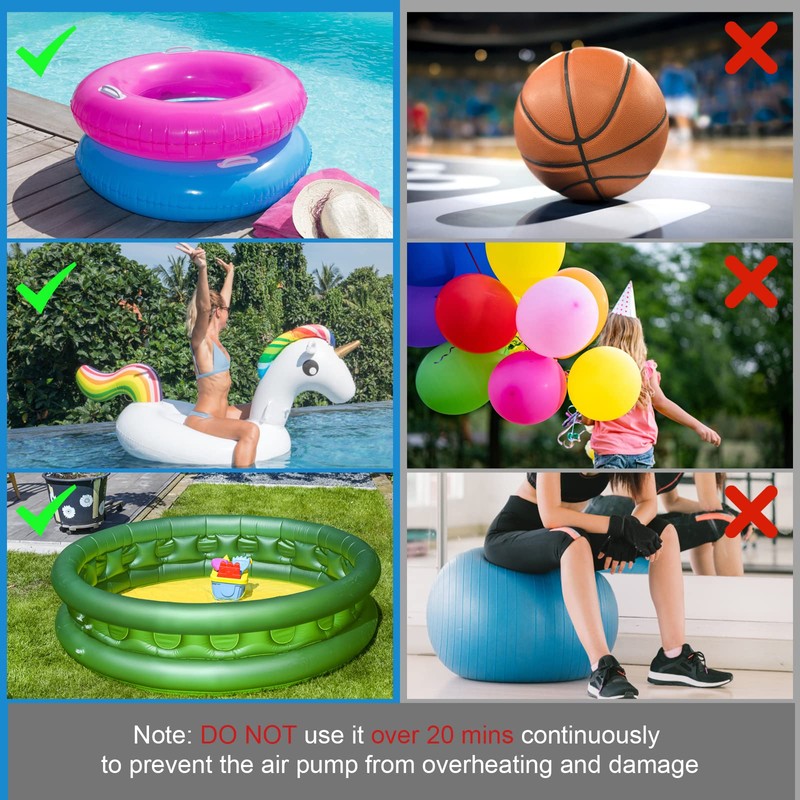 - Versatile and reliable: Our quick air blower is suitable for a variety of ventilated products, including air mattresses, air beds, pools, toy raftboats, inflatable furniture, swimming rings and more. You can rely on your items to be inflated or deflated quickly and efficiently.