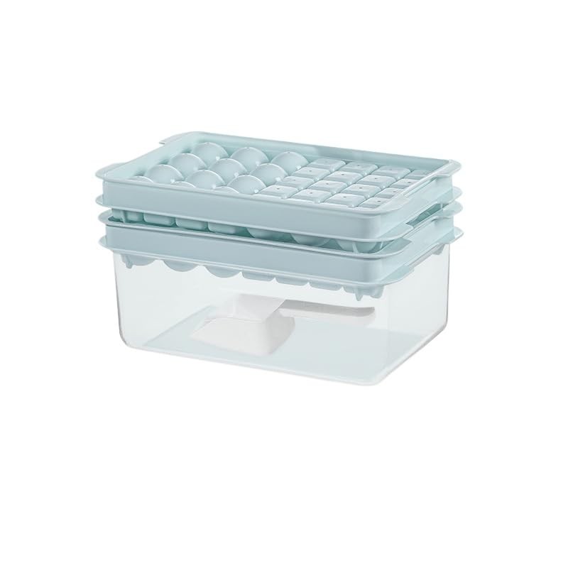Jshenk ice tray, ice trays for freezer, silicone ice cube tray, durable with removable spill-proof lid, BPA free, dishwasher safe, Uniform size, Light Blue