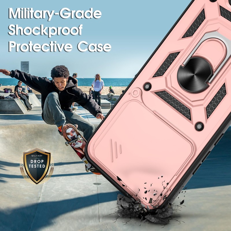 Jshru for Honor 400 Lite Case with Screen Protector,Built-in Camera Protection Cover and Ring Kickstand,Military Grade Shockproof Case for Honor 400 Lite,Rose Gold
