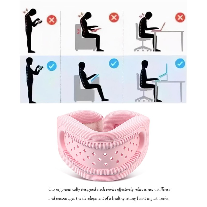 - 2. Neck pain relief: Cervical neck traction device fits 360 degrees around the neck to relieve neck pain and cervical spine pressure. Raised on both sides to support the weight of the head and support the neck to prevent cervical anterior tilt.