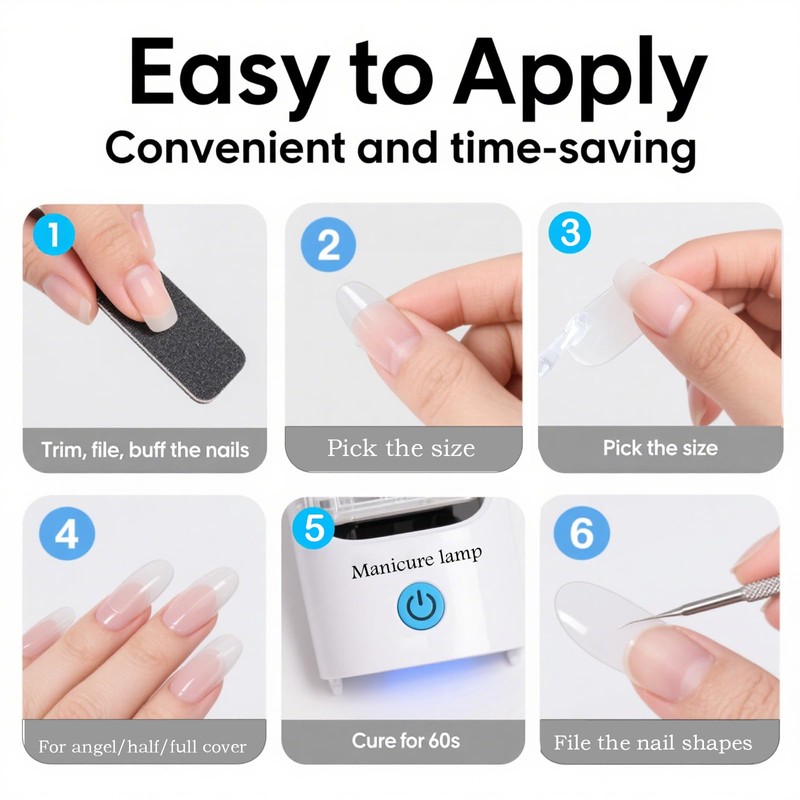 • **Easy to Use** :The fake nails is gelly soft tips and will make no trace even bend, bright clear you can more easily press trim, paint flat false nails to make your dream nails shape.The nail tips almond shape are pre etched, saving your time to file false nails bed, Real DIY manicure gel tips