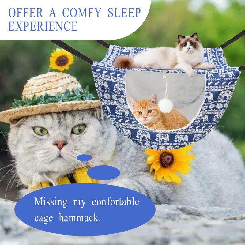 JSPYFITS Cat Cage Hammock with Ball,Double Layer Hanging Adjustable Soft Pet ...