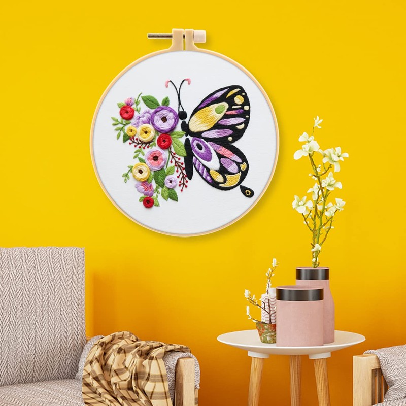 JSRQT Butterfly Embroidery Cross Stitch Set, Flower Stamped Embroidery Starter Kit, Embroidery Cross Stitch Starter Kit, DIY Sewing Craft Art for Beginners Adults