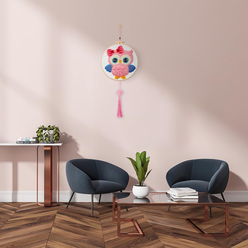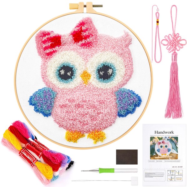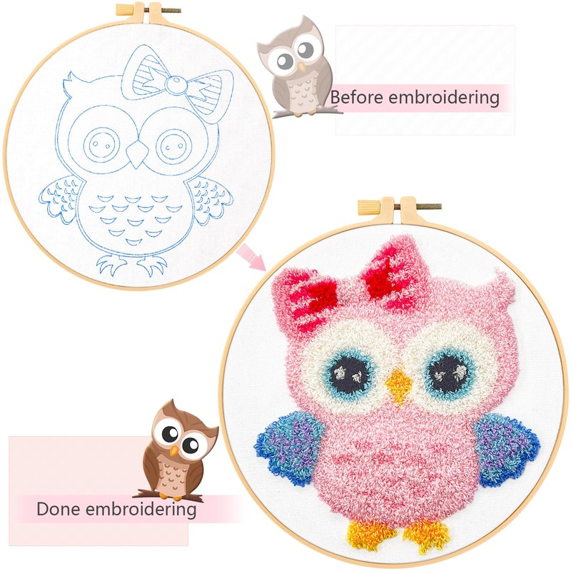 JSRQT Kit Punch Needle Debutant Owl Punch Needle Embroidery Starter Kit for Children Adults Punch Needle Fabric Pattern Set with Instruction Embroidery Starter Kits Craft DIY Punch Needle Embroidery