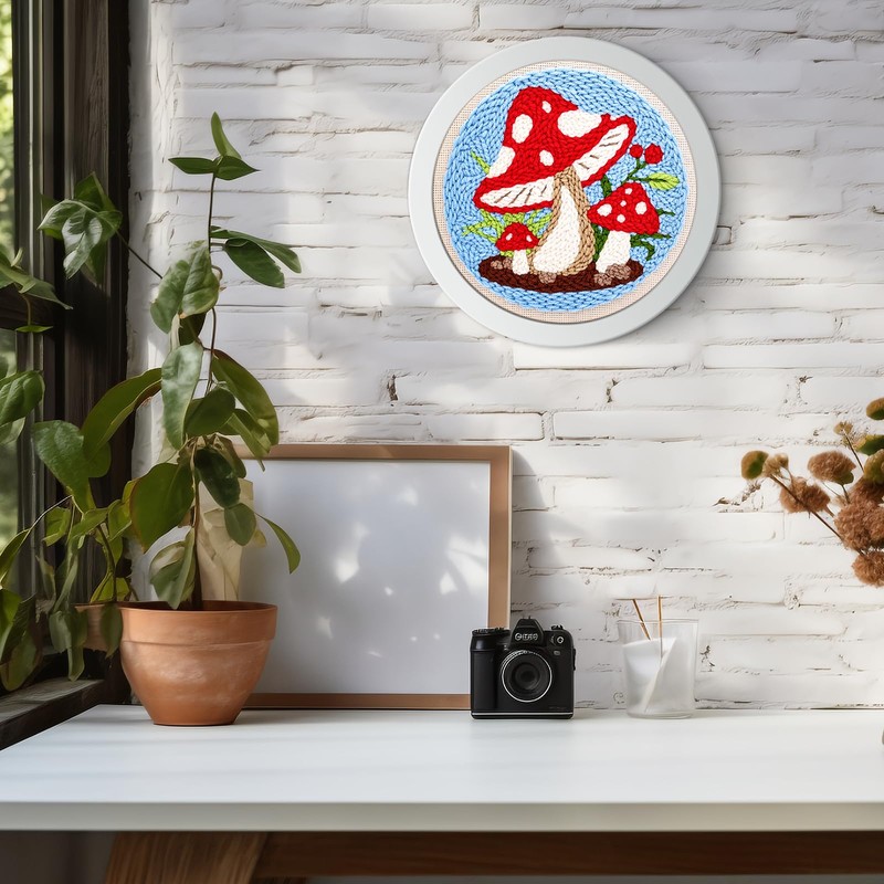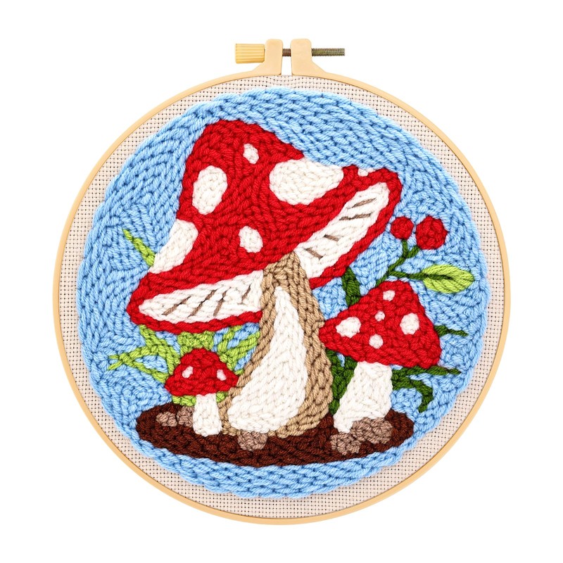 JSRQT Punch Needle Embroidery Starter Kits Mushroom Beginner Rug Hooking Kit with Embroidery Hoops Instructions Handcraft Punch Needle Kit for Adults Cross Stitch Kits Craft Rug-Punch & Pinch Needle