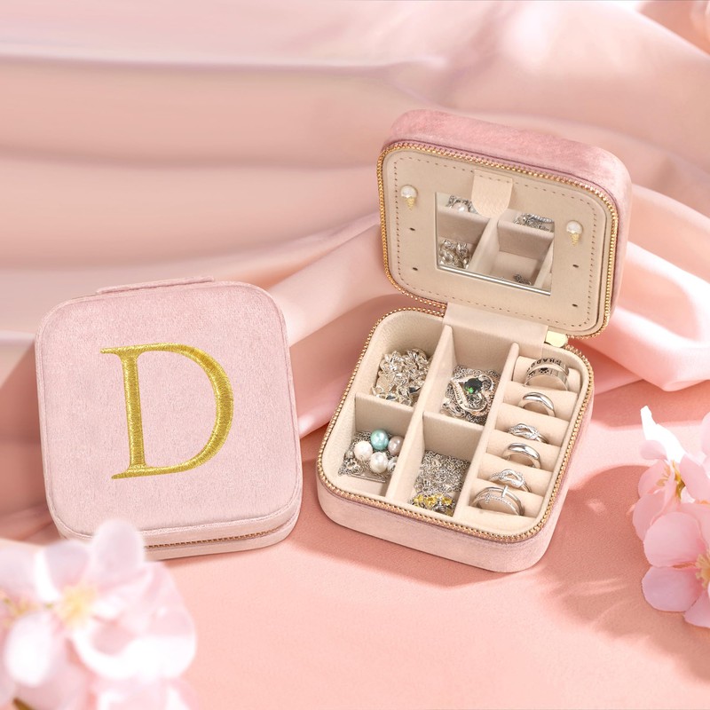 - Unique Gifts For women: Luxurious pink velvet and personalized embroidery letter, mini Jewelry case with letter makes the personalized gift for mom, daughter, friends, sister, bridesmaid, bride, wife, girlfriend, teacher...