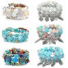 Jstyle 6Sets Bohemian Stackable Bead Bracelets for Women Stretch Multilayered Bracelet Set Leaf Tassel Charm Bangles Women Gifts