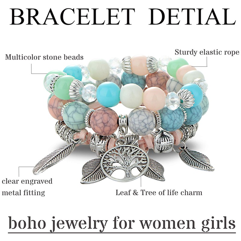 - HIGHLY MATERIAL-- With good quality elastic rope, easy to adjust suitable length, perfect stretchy bracelet suit for all of wrists, boho bracelet crafted from alloy(leaf and tree of life charms) and colorful beads; stylish and healthy ornaments, safe and eco-friendly.