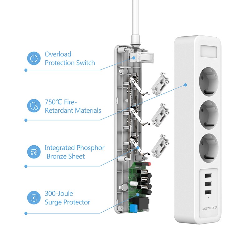 - Sicherheit und Schutz: Ein 16A ??berlastschutzschalter / LED-Anzeige erm?glicht die Steuerung von Wechselstromsteckdosen und USB-Anschl??ssen, w?hrend Sicherheitsabdeckungen Ihre Kinder und Haustiere vor jeder nicht verwendeten Steckdose sch??tzen.