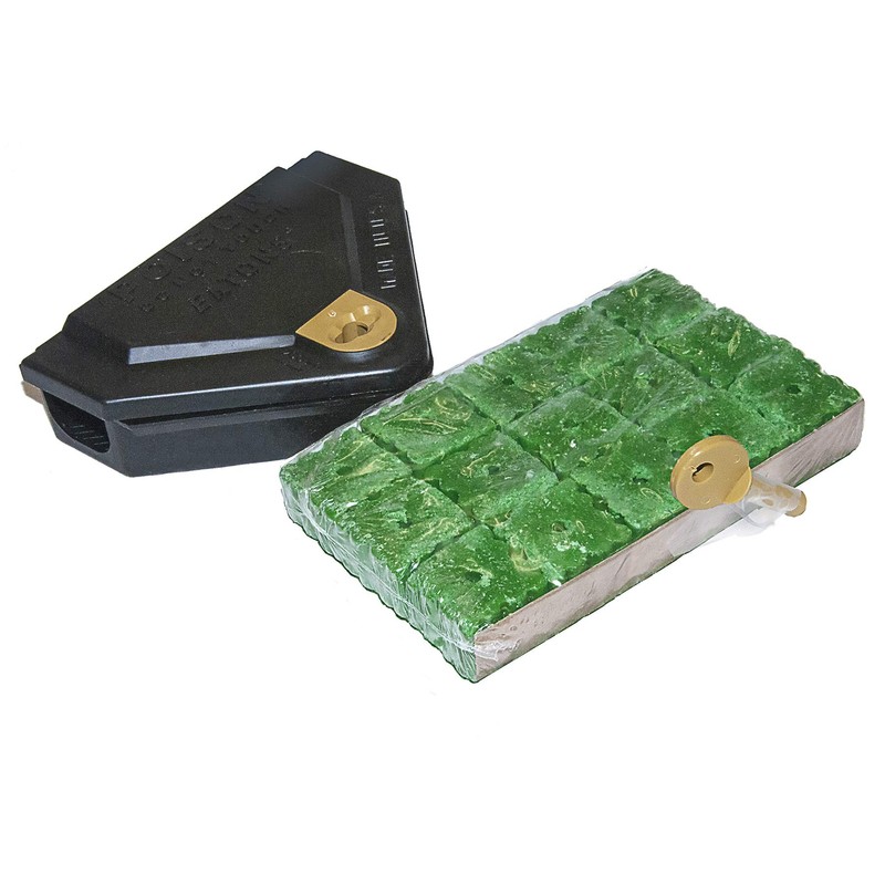 • Pre-filled with . 01-percent bromethalin active bait block with 1-ounce of top gun bait block and 3-ounces of additional bait