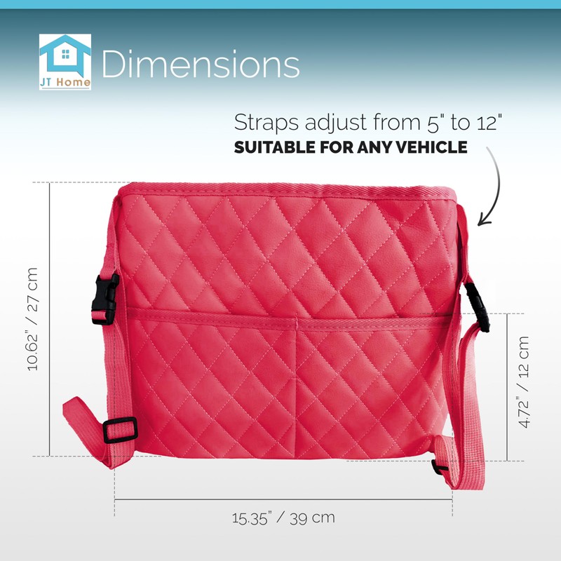 JT HOME Car Net Pocket Handbag Holder Between Seats, Luxury Quilted PU Leather Purse Car Organizer With 2 Extra Pockets For Storage, Red