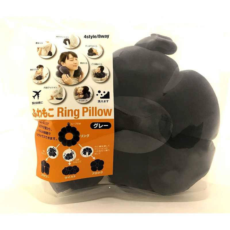 JTB Shoji 519076017 Fuwamoko Ring Pillow, 8 Way, Twist, Change Shape, Gray, 12.6 x 12.6 x 25.6 inches (32 x 32 x 65 cm)