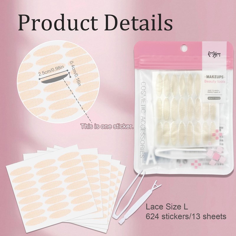 - PACKAGE CONTENTS: 624 pieces of adhesive-free double eyelid tape, each piece is 2.5cm long and 0.4cm wide, a total of 13 sheets , sufficient quantity to meet daily needs. Matching tools include 1 forked pole, 1 pair of tweezers, convenient for daily use