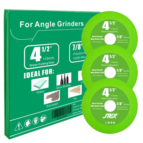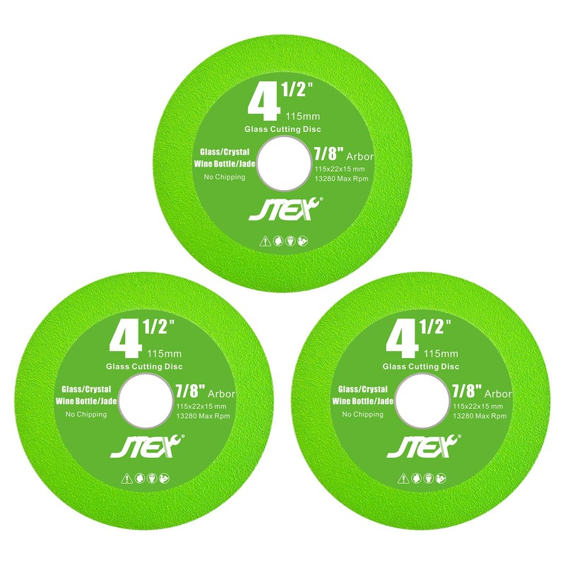 JTEX 4.5 Inch Glass Cutting Disc for Angle Grinder, 7/8" Arbor, Ultra-Thin 4-1/2" Diamond Saw Blades Grinding and Cutting for Wine Bottles, Glass, Jade, Crystal, Tile (3-Pack)
