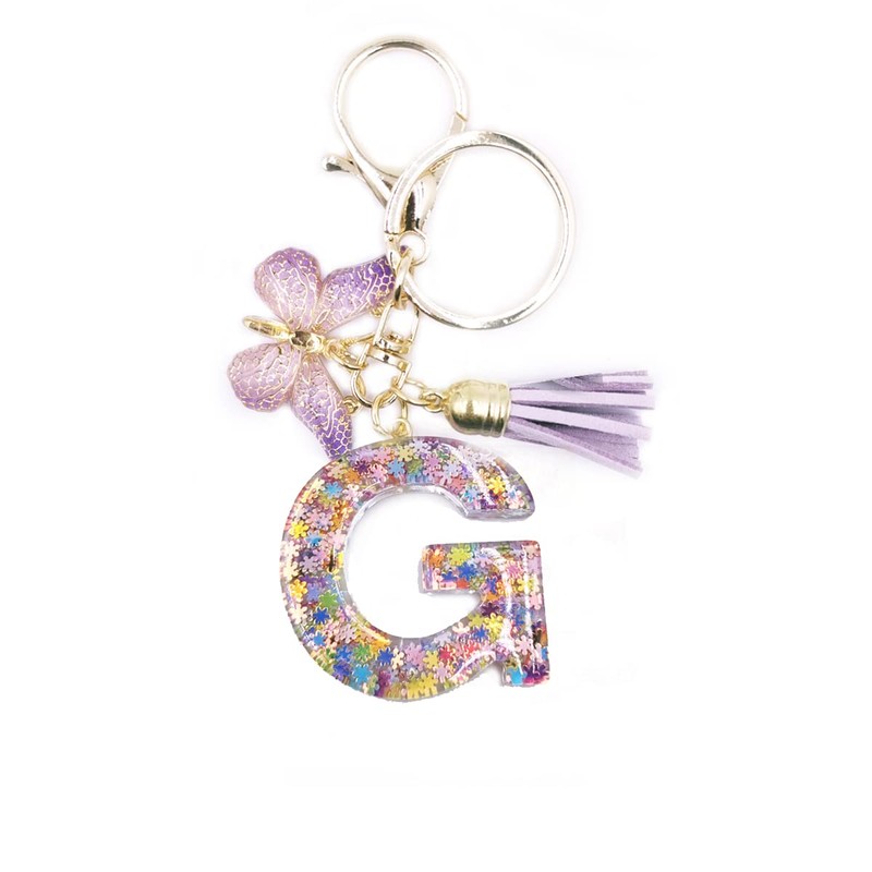 jtkdxqs Letter A-Z Keychain Purple Tassel Butterfly Key Ring for Women Girls,Letter G