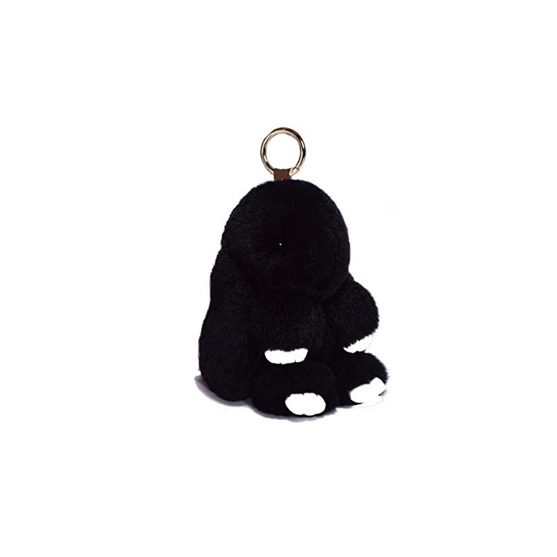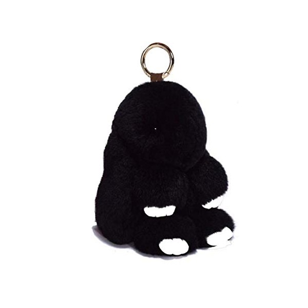 jtkdxqs Soft Cute Bunny Keychain Artificial Rabbit Fur Plush Fluffy Pom pom Key Ring for Women,black