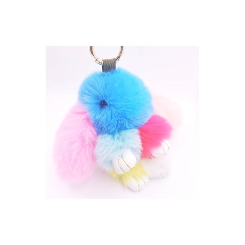 jtkdxqs Soft Cute Bunny Keychain Artificial Rainbow Rabbit Fur Plush Fluffy Pom pom Key Ring for Women,style 1