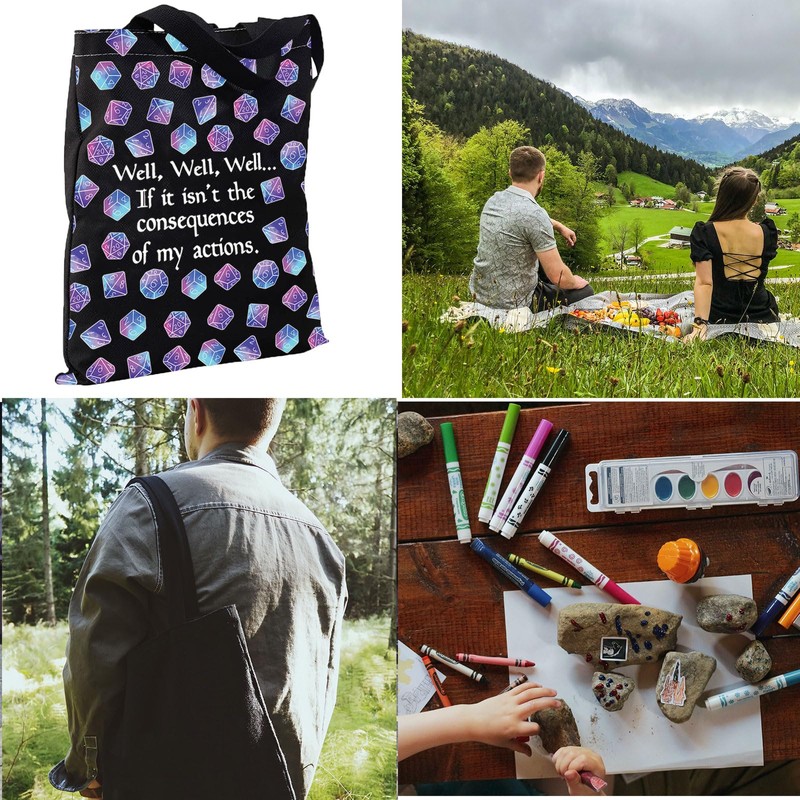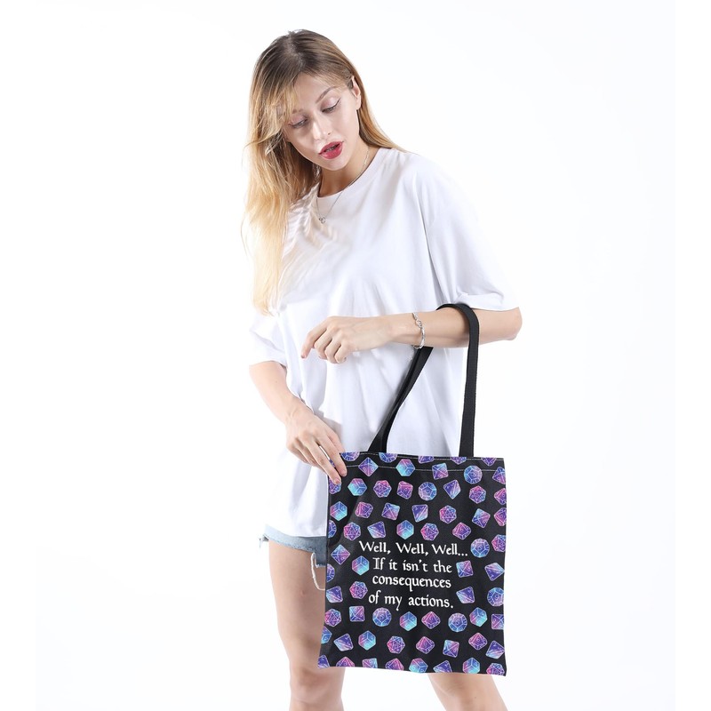 JTOUK DnD Gift Role Playing Games Gift D20 Dice Pouch D&D Accessory Pouch Bag DM Games Makeup Bag for RPG Gamer (My Actions Tote EU)