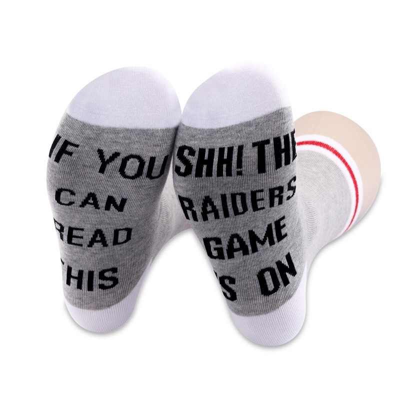- ?QUOTE SOCKS?With funny quote: IF YOU CAN READ THIS, SHH...THE RAIDERS GAME IS ON.