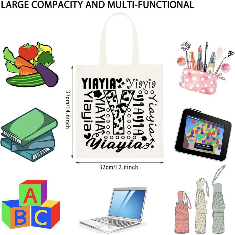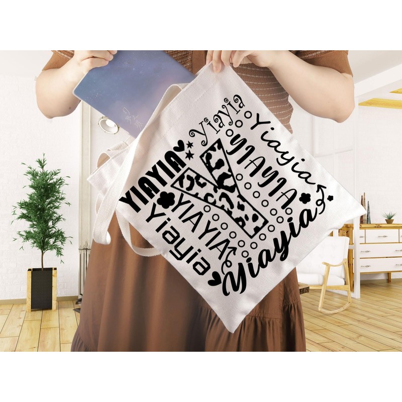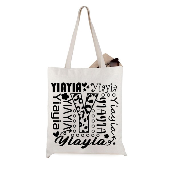 JTOUK Yiayia Gift Yiayia Typography Canvas Tote Bag Travel Bag Shopping Bag for Grandma (Yiayia Tote EU)