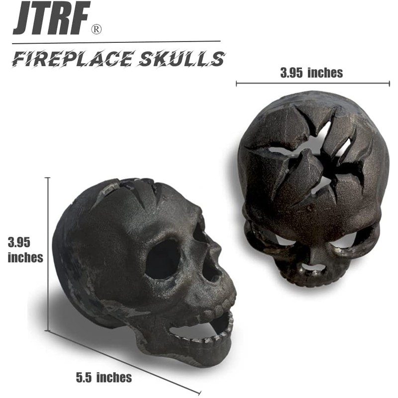JTRF 2pcs Refractory Materials Fireproof Imitated Human Fire Pit Skulls Gas Log for NG, LP Wood Fireplace, Firepit, Campfire, Halloween Decor, BBQ