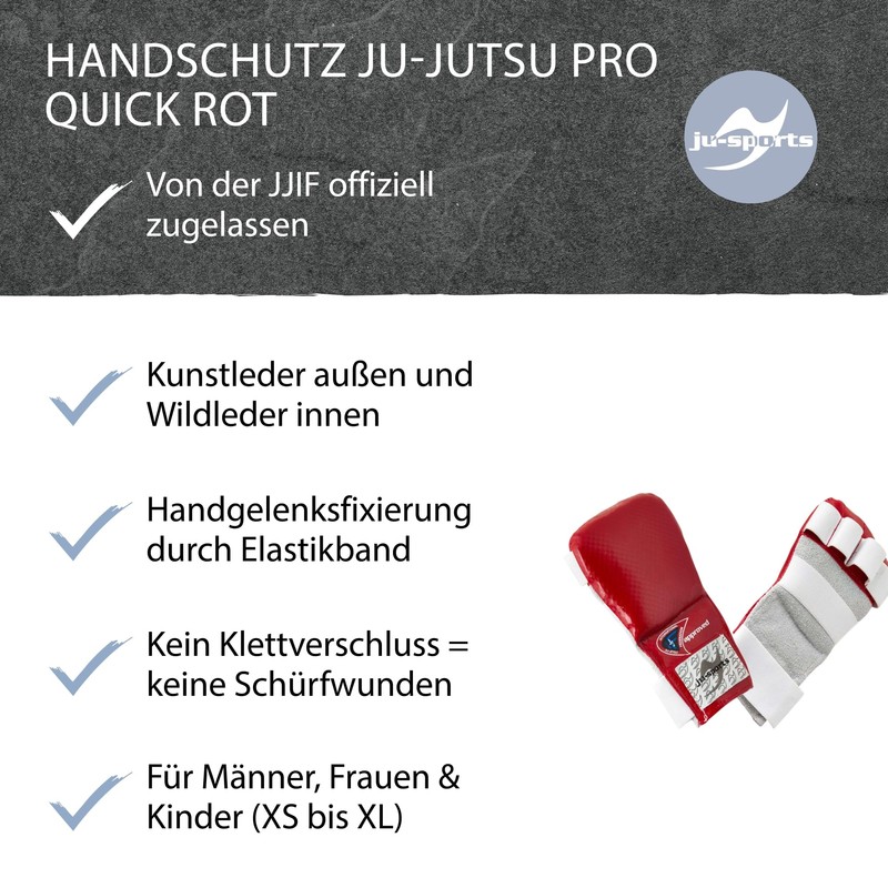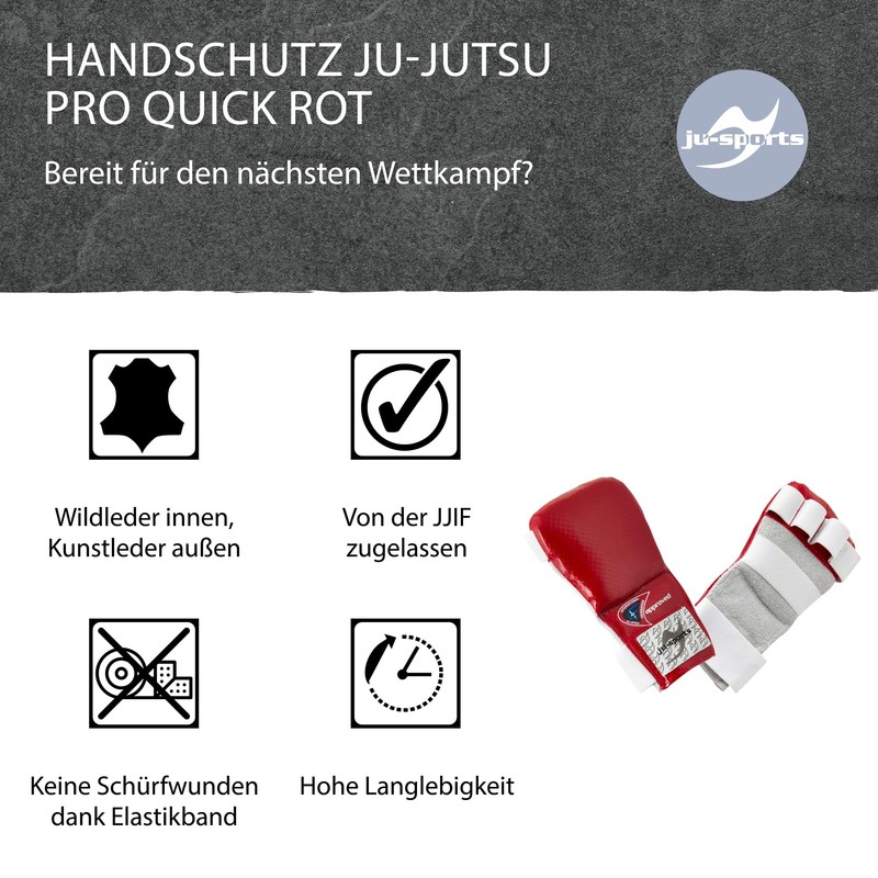 Ju-Sports Ju Jutsu Pro Quick Hand Guard - Red, PU & Leather I High Quality Competition Hand Guard for Martial Arts with Elastic Loop I For Women, Men, Teenagers & Children I Size S