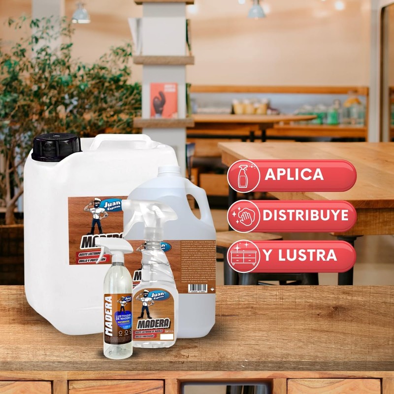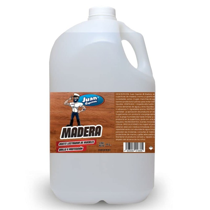 - Juan Capitán Madera, es un producto diseñado para lustrar, limpiar y proteger superficies de: madera, fórmica y cualquier tipo de m