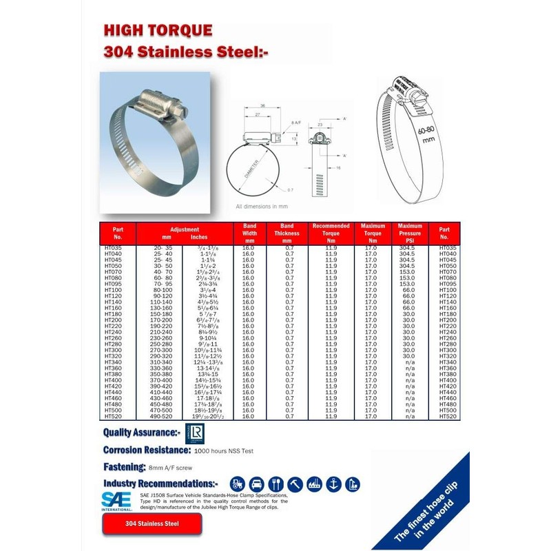 Jubilee HT70 40 - 70mm 304s/s High Torque Clip
