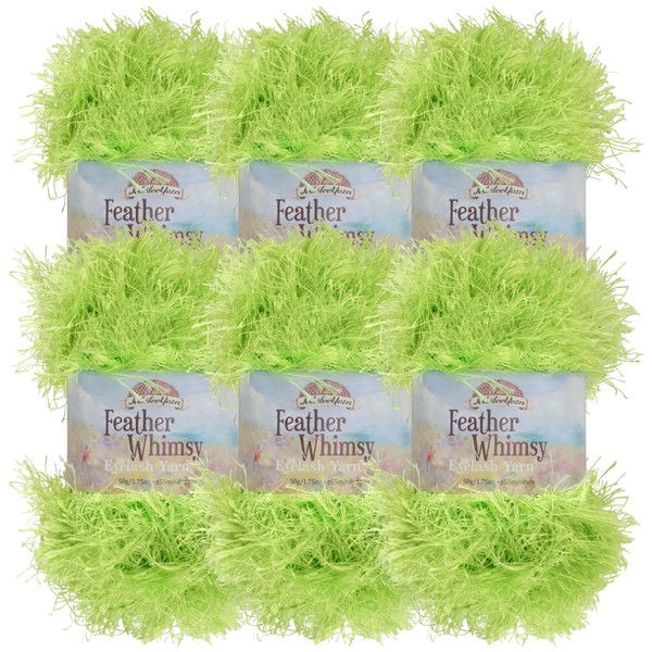 JubileeYarn Feather Whimsy Eyelash Yarn - 50g/Skein Fine Polyester Fur - Pear Green - 6 Skeins