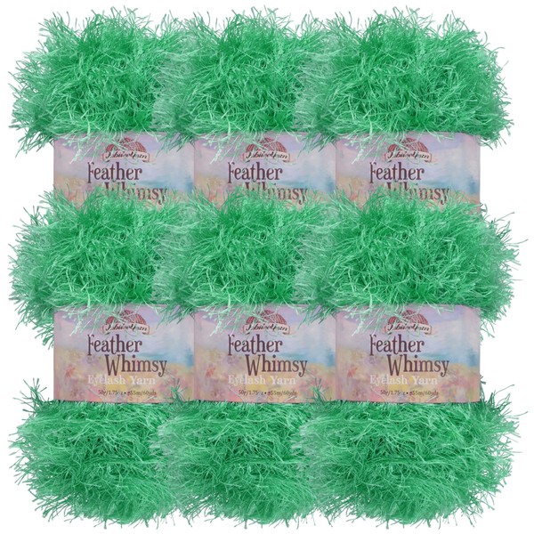 JubileeYarn Feather Whimsy Eyelash Yarn - 50g/Skein Fine Polyester Fur - Shamrock Green - 6 Skeins