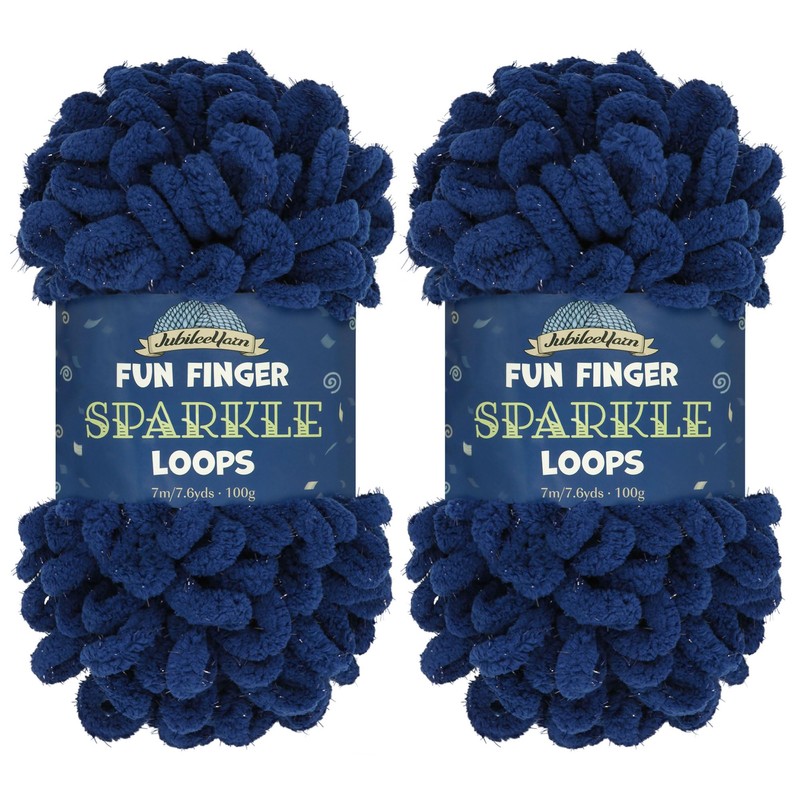 JubileeYarn Fun Finger Sparkle Loops Yarn - Polyester Jumbo Loop Yarn - 100g/Skein - Navy - 2 Skeins