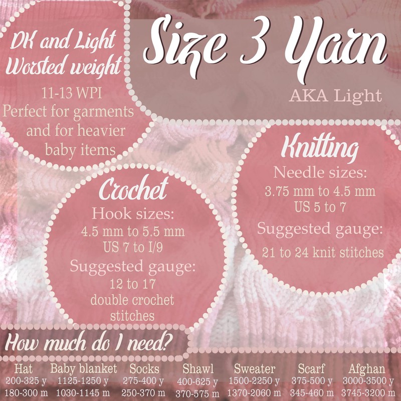 - [CATEGORY] 3 light. Also known as DK or light worsted weight