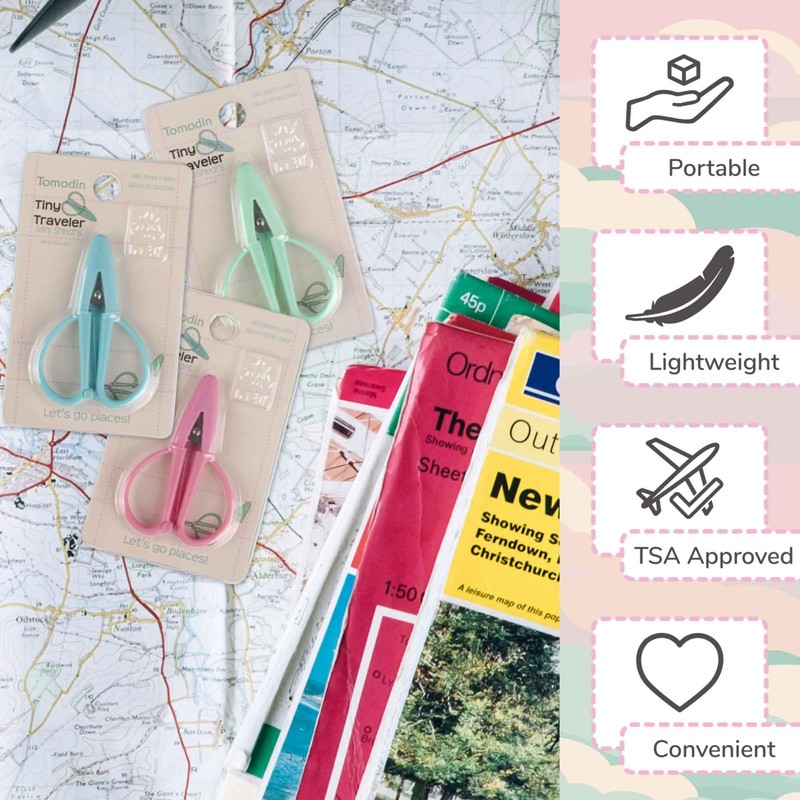 JubileeYarn Tiny Traveler Scissors - Portable Mini Airplane Snips - Beach Glass, Sea Pink, Aqua Haze - 10 Total Scissors