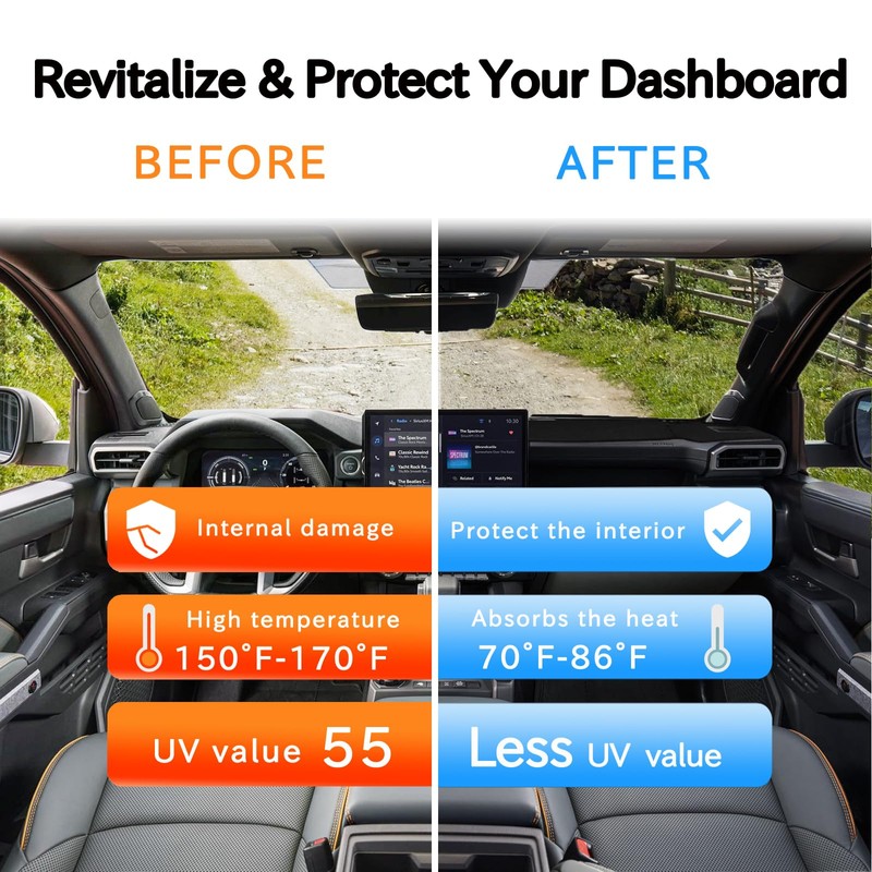 • Effortless Installation:No tools required! Simply lay the dash cover flat on your dashboard and secure it with the included non-marking adhesive strips