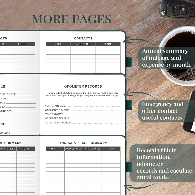 - WITH CONCISE FORMAT AND EXTRA FEATURES: This mileage logbook is designed to be concise and clear, easy for you to read, so you can easily find any information you need.Emergency contacts, maintenance records, insurance information and so on can also be found in the mileage logbook, helping you to better manage your vehicle