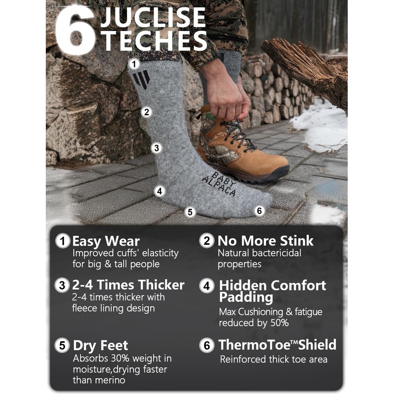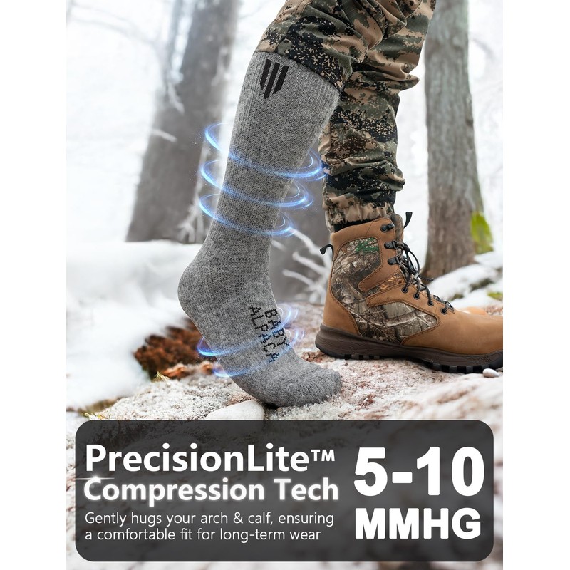 Juclise Alpaca Wool Heavyweight Thermal Boot Socks Winter Hunting Hiking Working Cold Weather Cushioned (US, Alpha, Large, Regular, Regular, Pale Gray)