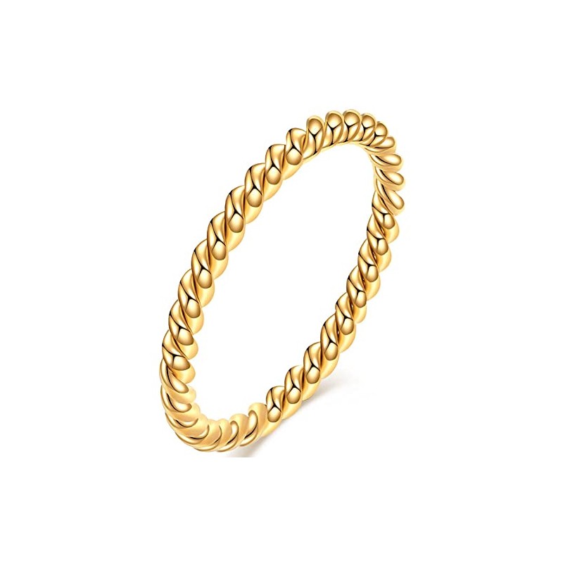 Jude Jewelers 2mm Stainless Steel Braided Rope Style Classic Plain Stacking Wedding Band Ring (Gold, 4)