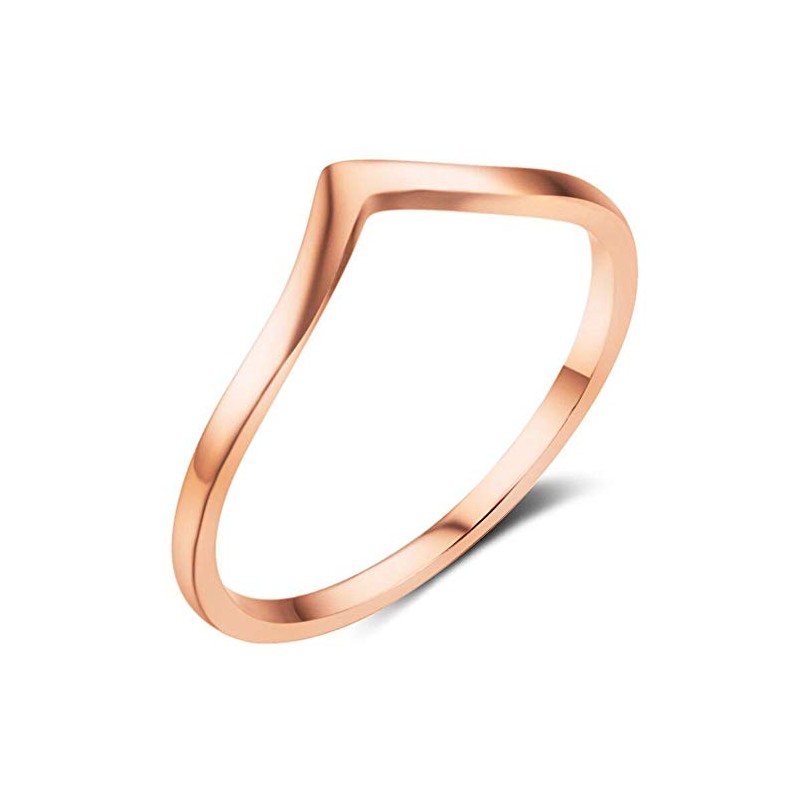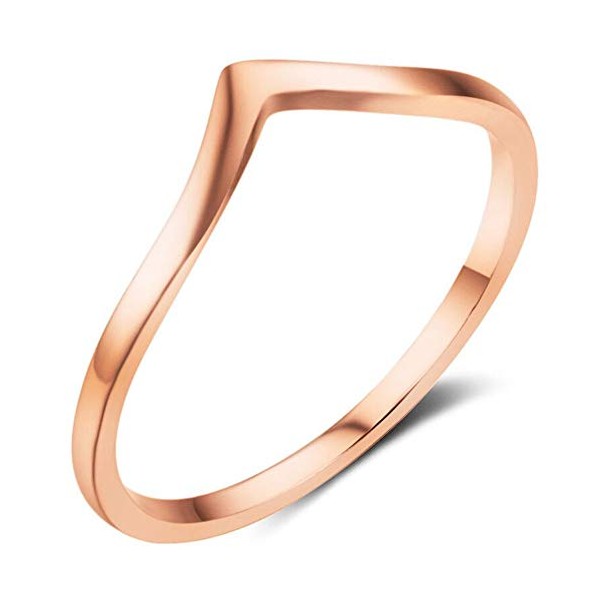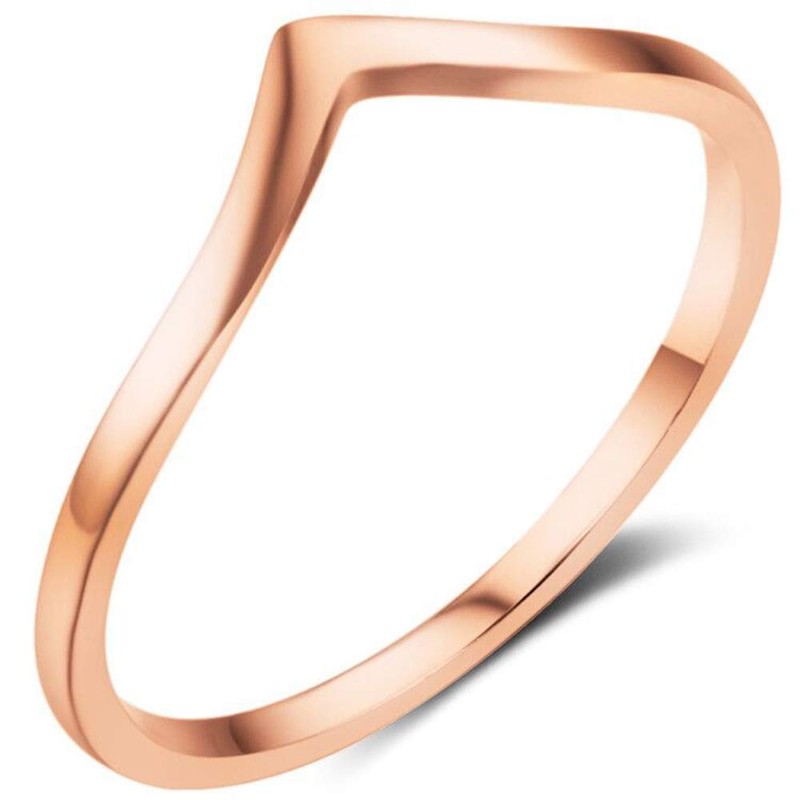 Jude Jewelers Stainless Steel Pointed Chevron Classical Simple Plain Statement Promise Ring (Rose Gold, 5.5)