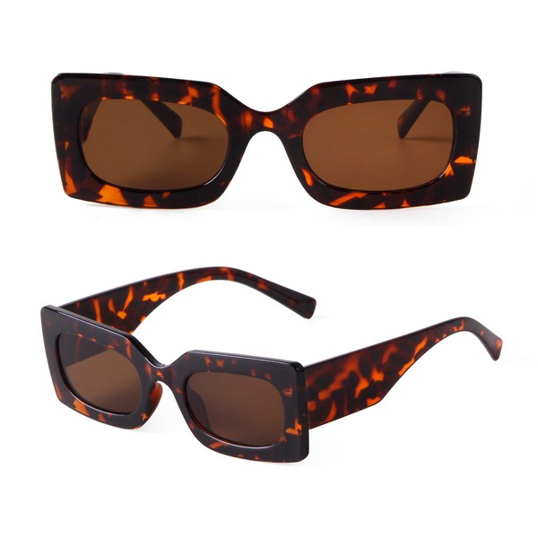 - Fashion Design: New trendy y2k rectangular frame, this design is very popular, colorful sunglasses will offer you different look, classic black, trendy leopard, cute pink, special caramel.